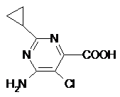 2010年,杜邦公司的植保产品取得了“中等个位数”的增长,而今年销售量的增加有望使公司农药产品的销售额取得进一步的增长。杜邦公司所希望的增长主要来源于杀虫剂Rynaxypyr(氯虫苯甲酰胺,即中国市场的“康宽”)、杀菌剂啶氧菌酯(picoxystrobin)以及新一类的非作物用除草剂氯丙嘧啶酸[aminocyclopyrachlor(英文通用名),Aptexor(英文商品名),6-氨基-5-氯-2-环丙基嘧啶-4-羧酸(IUPAC名)、6-氨基-5-氯-2-环丙基-4-嘧啶羧酸(CA名)]。氯丙嘧啶酸的结构式见图1。该产品在美国获准登记用于草坪后,于2010年11月首次进入美国市场,其商品名为Imprelis。2011年1月,杜邦公司取得了以氯丙嘧啶酸为有效成分的3个工业用除草剂的登记证。