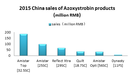 As a star product with sales of 1 billion, Azoxystrobin has been rapidly growing since 2010 in China. The capacity of Azoxystrobin TC has risen to about 7000 tons with 73 registered Azoxystrobin TC and 347 Azoxystrobin formulation. Compared with Amistar of Syngenta, Chinese enterprises have released Azoxystrobin brand products, such as Nongjingling(48% difenoconazole Azoxystrobin SC ) from Huizhou City Silver agricultural science and Technology Co., Ltd., Dingmiao (30% difenoconazole Azoxystrobin SC) from Shenzhen Noposion Agrochemicals Co., Ltd, and Hemei (250g/L Azoxystrobin SC ) etc. , but the Chinese azoxystrobin market development is not better than that of Syngenta.