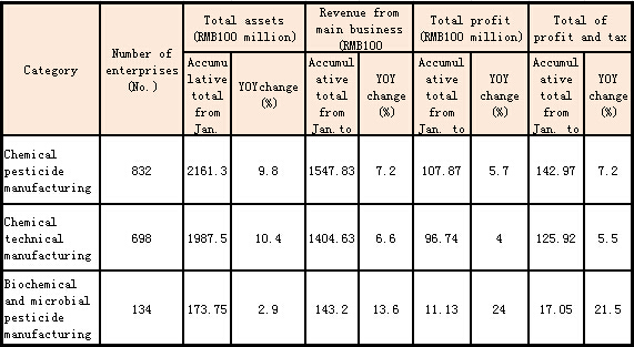 The data from the National Bureau of Statistics shows that in the first half of 2015, the national agrochemical industrys main business revenue was RMB154.783 billion, up 7.2% year on year; the total profit was RMB10.787 billion, up 5.7% year on year. The total profit of chemical pesticides grew 4.0% year on year, while that of biochemical and microbial pesticides grew 24% year on year, a growth much bigger than that of chemical pesticides.