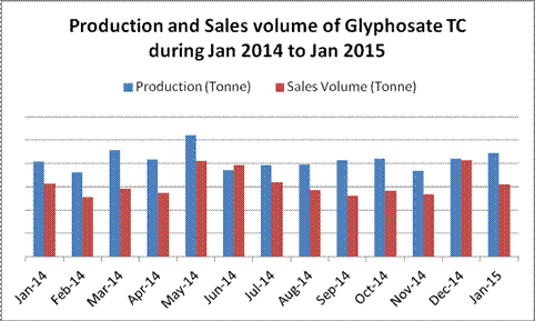 With 24 glyphosate manufacturers operating in Jan, output kept same level with that of Dec 2014, while sales volume decreased by 25% month-on-month. Sales volume declining was basically caused by the Spring Festival, orders from domestic fell significantly, only export orders was still in operation. Stock of glyphosate in Jan was at high level. The potential risk of price collapse has been showing up. Insiders are laying their hope on the market after the festival.