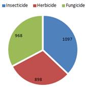 Among the pesticides registered in 2014, there were 1,097 insecticides, accounting for 33%, down 8.9% YoY; 968 fungicides, accounting for 28.7%, up 14.6% YoY; 898 herbicides, accounting for 26.6%, down 5.0% YoY. Insecticides still had the highest proportion (33%), showing a trend of falling from a high level. Fungicides grew significantly, which is a mutual corroboration with the largest number of azoxystrobin products registered. The relationship between the change in registration structure and the expiry of product patents is worth studying.