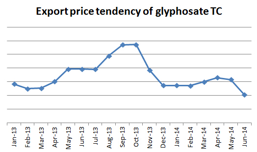 In June, the number of glyphosate export orders increased by 30% than that of May. Although export price dipped to a low point in June, the coming demand season will boom the market. Purchasing has become intensify during the past few weeks, it’s estimated that the market turning point will appear in August.