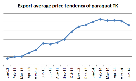 Seen from export situation, since Feb 2014, the export average price has been decreasing, in June the price even fell below $4400 per tonne, declined by 7% than the high point this year. While the number of orders increased by 30% than that of May.