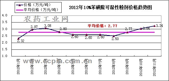 以下为10%苯磺隆可湿性粉剂2012年1-11月价格走势图: