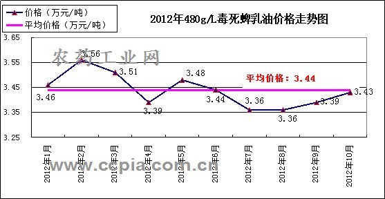 以下为480克/升毒死蜱乳油2012年1-10月价格走势图: