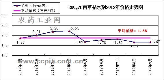 以下为200克/升百草枯水剂2012年1-9月价格走势图: