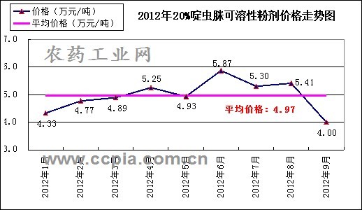 以下为20%啶虫脒可溶性粉剂2012年1-9月价格走势图: