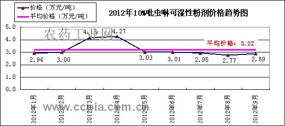 以下为10%吡虫啉可湿性粉剂2012年1-9月价格走势图: