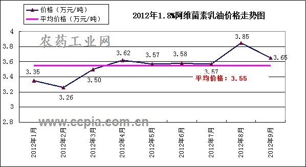 以下为1.8%阿维菌素乳油2012年1-9月价格走势图: