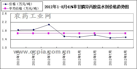 以下为41%草甘膦异丙胺盐水剂2012年1-8月价格走势图: