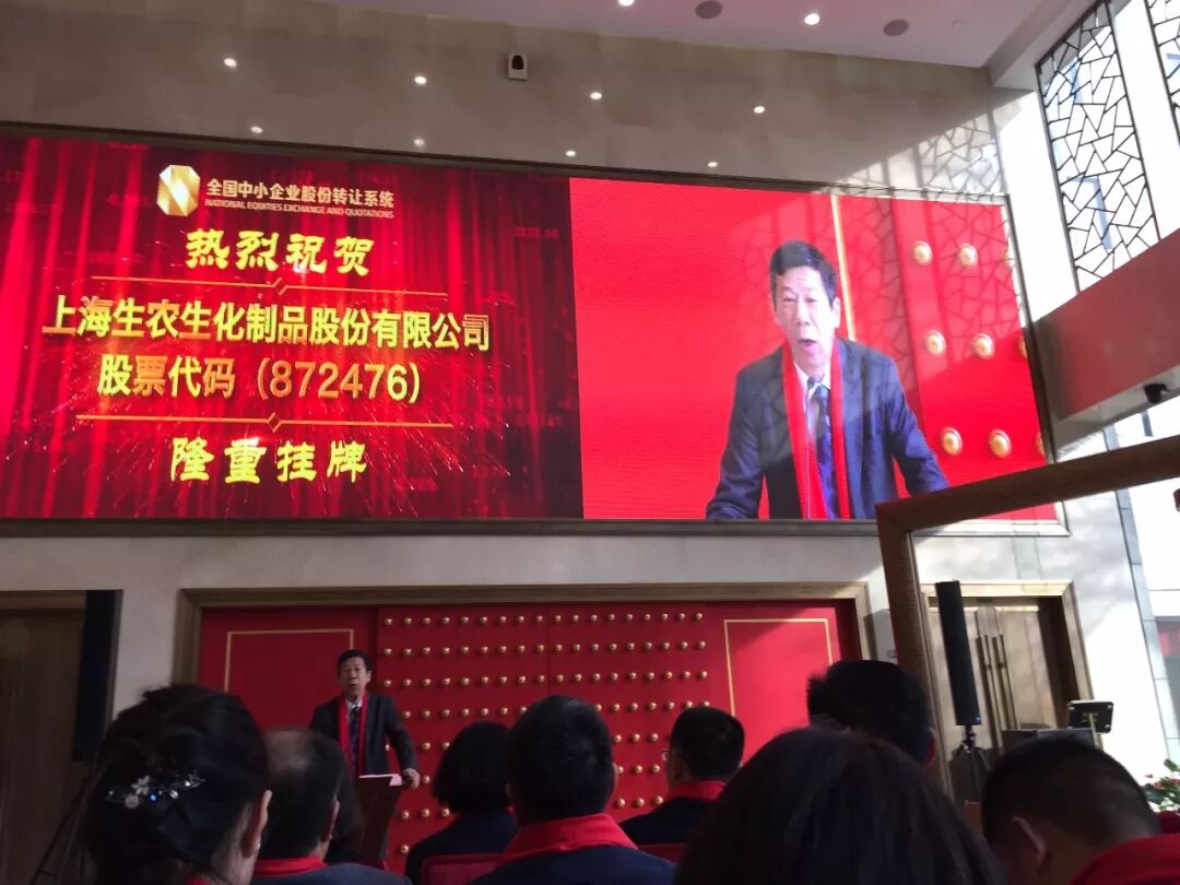 2018年1月18日,上海生农生化制品股份有限公司新三板上市挂牌敲钟仪式正式在北京举行,证券代码872476。